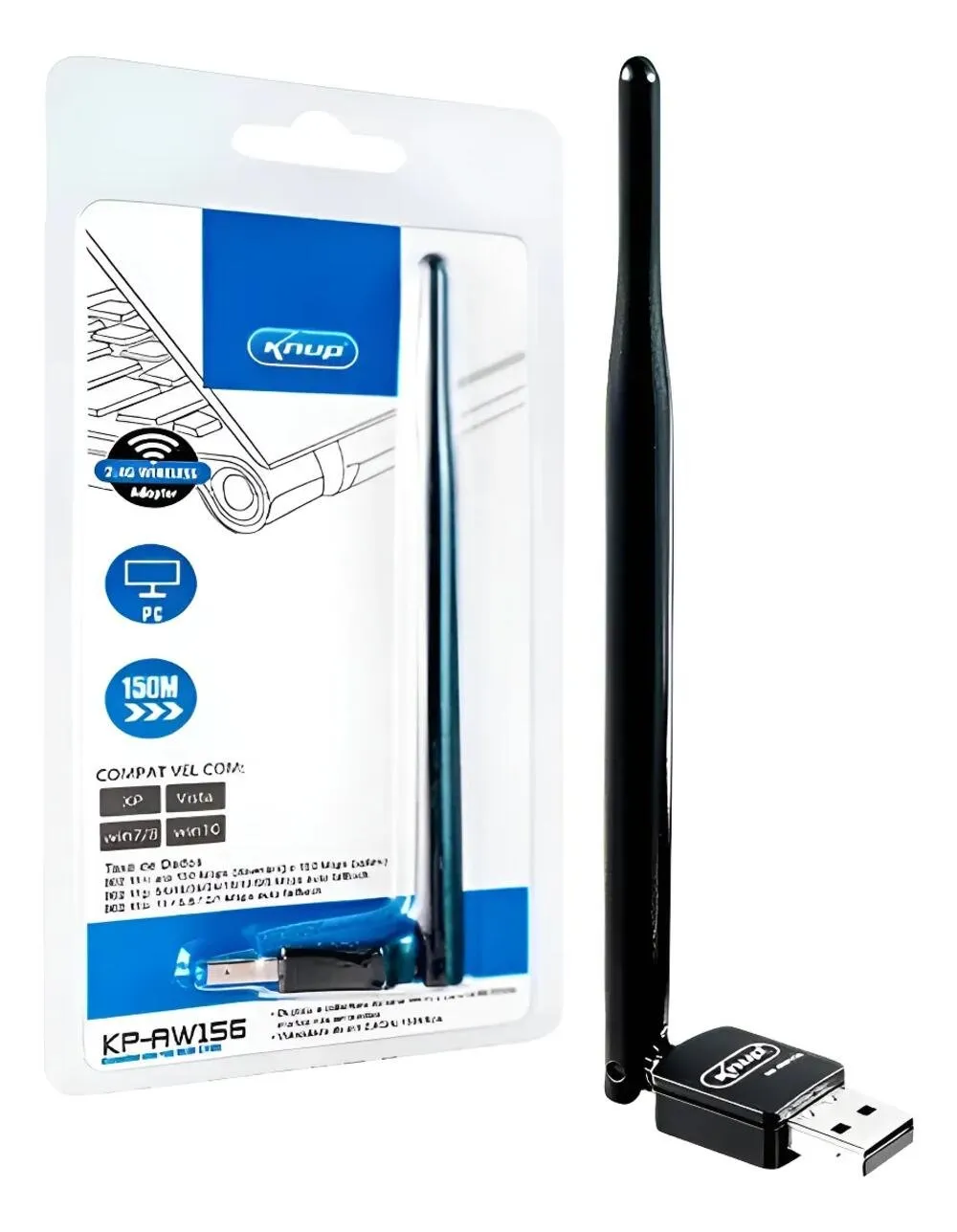 1 × Adaptador Wireless USB Knup KP-AW156 com antena externa