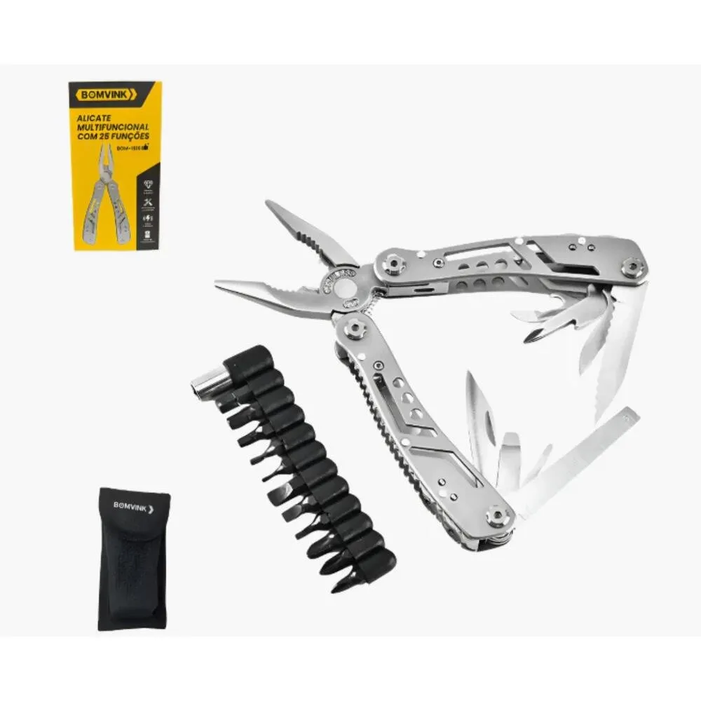 O Alicate Multifuncional Dobrável Bom-1516 é a ferramenta ideal para quem busca praticidade, versatilidade e eficiência em um único produto. Com 25 funções integradas, atende perfeitamente às necessidades de reparos rápidos, manutenções, atividades ao ar livre, camping, trilhas, pesca, sobrevivência e uso doméstico.