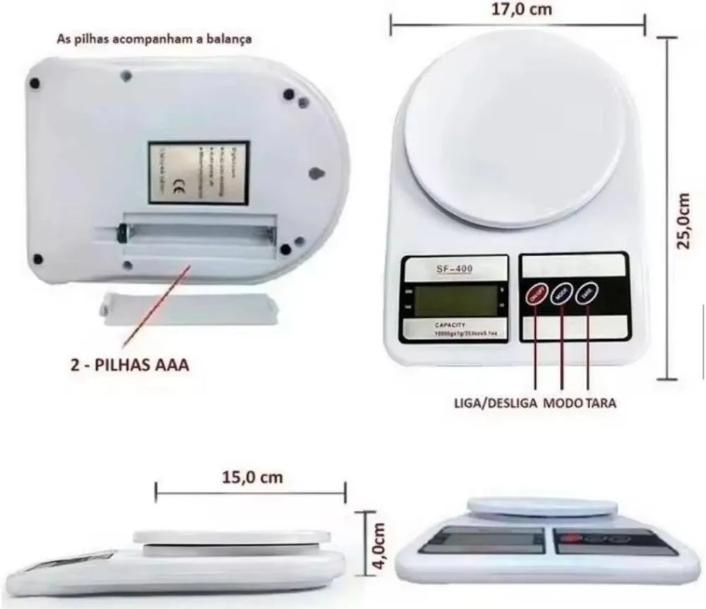 A Balança Eletrônica de Cozinha New Ion AC-7 é um equipamento digital compacto projetado para facilitar a medição precisa de alimentos e ingredientes em ambientes domésticos ou profissionais de culinária. Com capacidade máxima de 10 kg e resolução mínima de 1 g, ela possui visor LCD de fácil leitura e funções essenciais como tara para descontar o peso de recipientes, além de alternância de unidades (gramas/onças). Alimentada por pilhas (geralmente 2 AA), sua operação é simples e intuitiva, ideal para quem precisa acompanhar receitas com precisão, controlar porções ou pesar ingredientes em preparos culinários variados. A construção leve e resistente em plástico facilita a limpeza e o armazenamento.