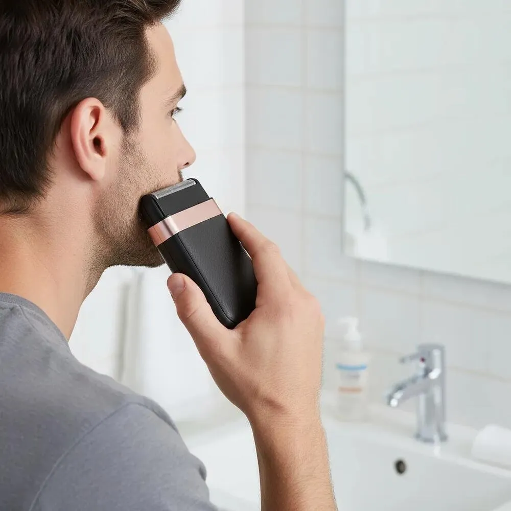 O barbeador permite um acabamento confortável e seguro sem irritação da pele, sendo uma ótima opção para quem busca praticidade e eficiência no cuidado pessoal.