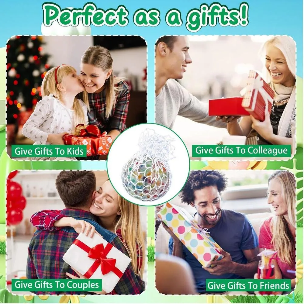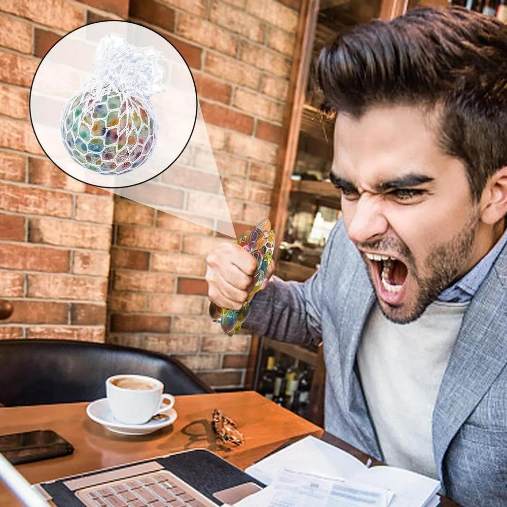 Relaxe e se divirta ao mesmo tempo! A Bola Anti Estresse com Rede é aquele brinquedo sensorial irresistível: você aperta e as bolinhas coloridas “saltam” pela malha, criando um efeito de uva super divertido. Ideal para aliviar a tensão do dia a dia, ocupar as mãos, melhorar o foco e ajudar a controlar a ansiedade.