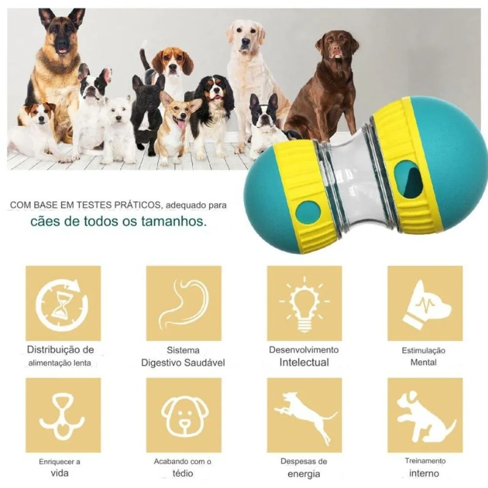 Formato ergonômico: O design facilita o movimento, fazendo com que o brinquedo role ou balance, liberando petiscos conforme o cão interage.