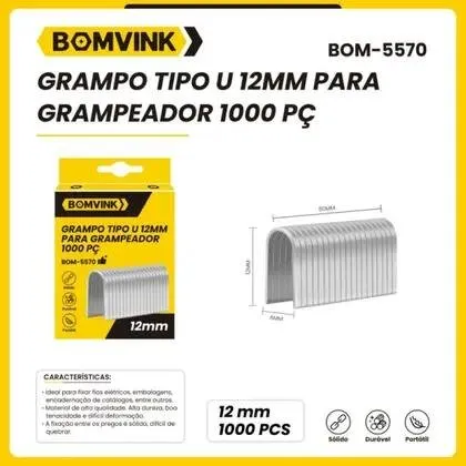 Grampo Tipo U 12mm Para Grampeador – Caixa Com 1000 Peças Bomvink