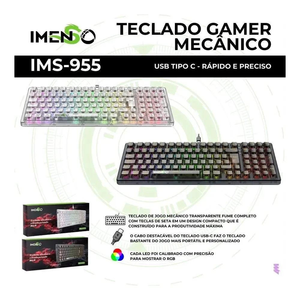 O Teclado Gamer Mecânico IMENSO IMS-955 foi desenvolvido para usuários que buscam alta performance, resistência e um design diferenciado. Seu sistema de teclas mecânicas garante resposta rápida e precisa, ideal para jogos e uso intenso.