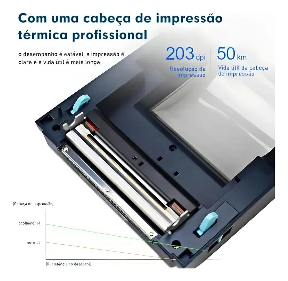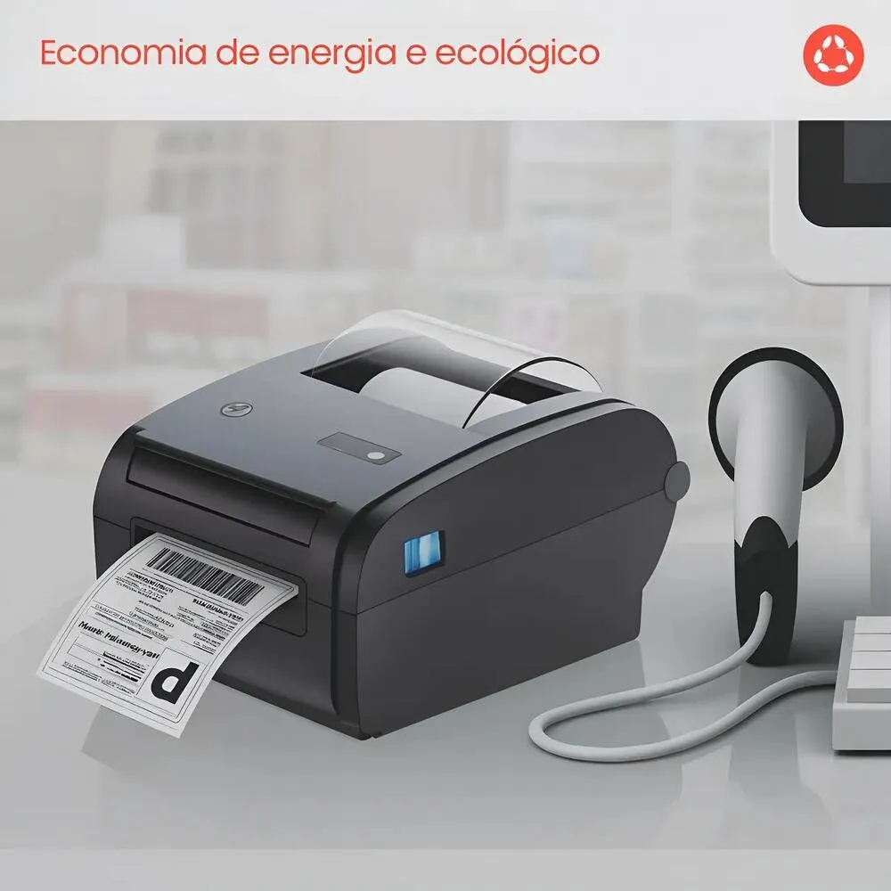 Impressora desenvolvida com tecnologia térmica para realização de impressões, dispensando o uso de tinta ou toner, conforme o funcionamento característico desse tipo de equipamento.
