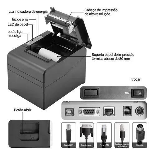Impressora desenvolvida com tecnologia térmica para realização de impressões, dispensando o uso de tinta ou toner, conforme o funcionamento característico desse tipo de equipamento.