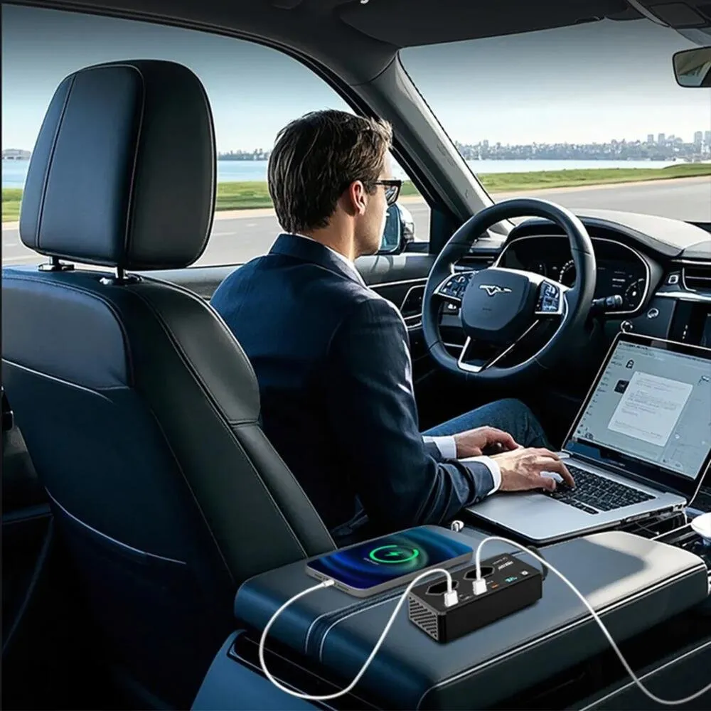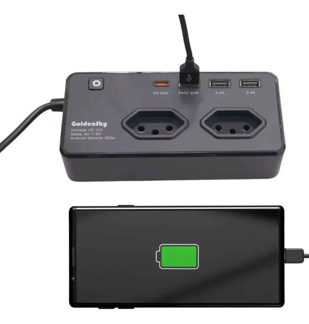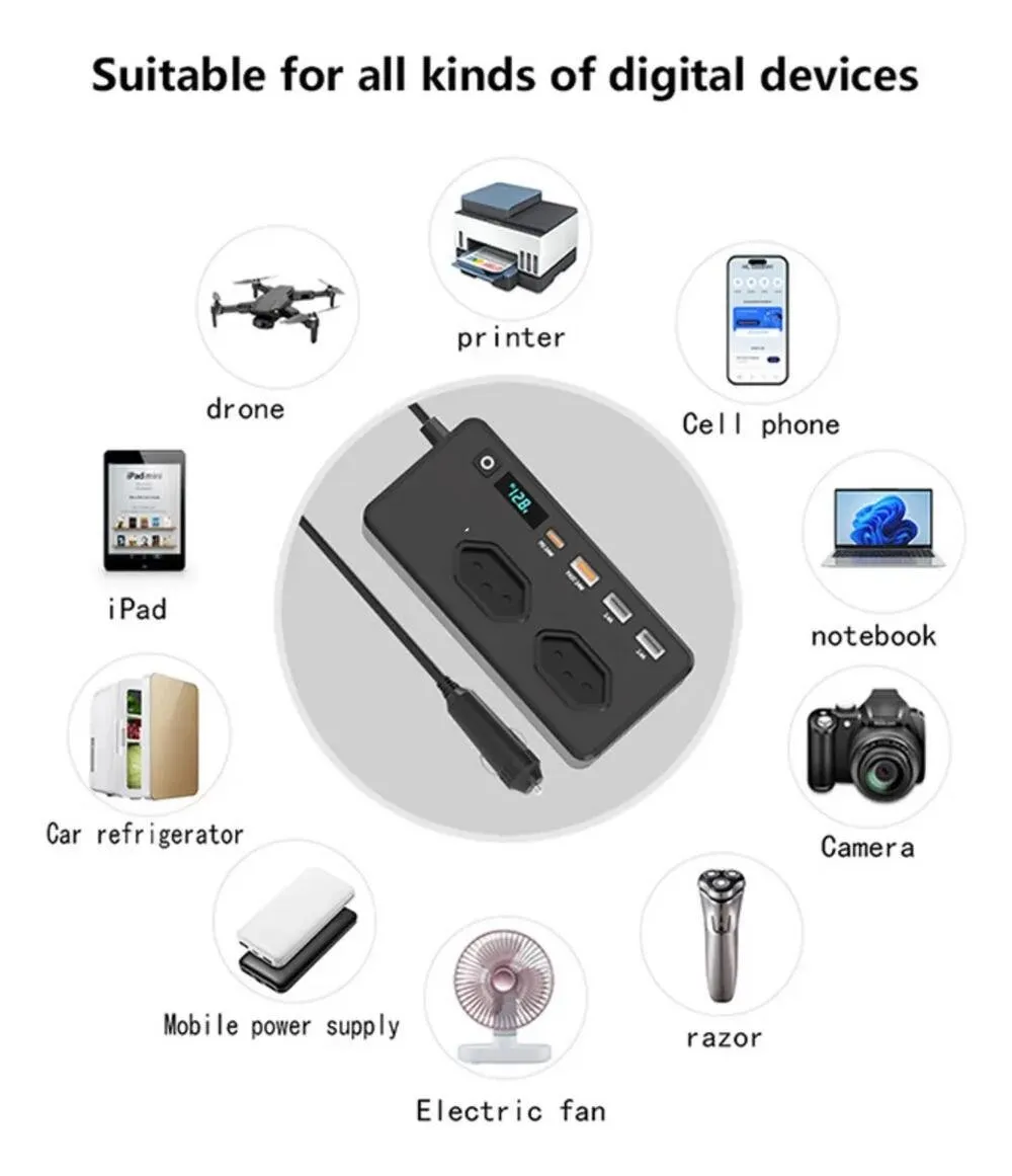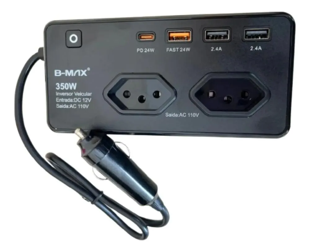 Transforme a energia do seu veículo em tomadas e carregadores úteis para o dia a dia. Com o inversor veicular de 350W, você pode alimentar e carregar diversos dispositivos eletrônicos com segurança e praticidade.