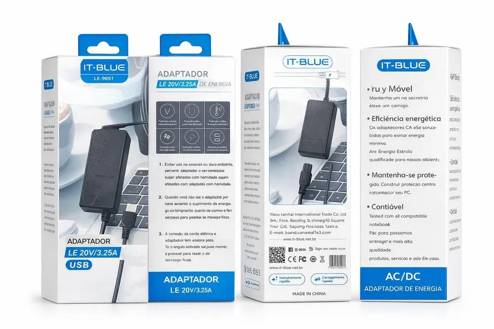 O Adaptador de Energia USB IT-Blue LE-9051 foi desenvolvido para fornecer alimentação elétrica estável e segura a equipamentos compatíveis que exigem tensão de 20V e corrente de 3,25A. Com saída USB, oferece praticidade e versatilidade para aplicações modernas, sendo uma excelente opção para reposição ou uso profissional.